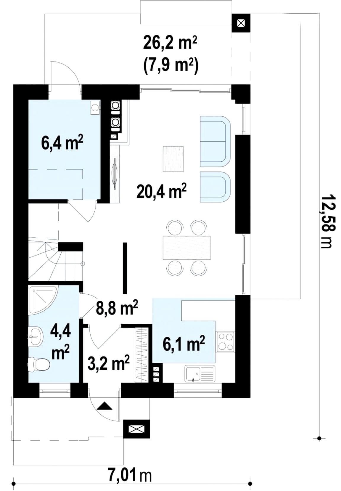 Современный проект дома площадью 100 м2, воплощающий в себе мечту о своем жилье и наиболее оптимально использующий пространство в 100 м2