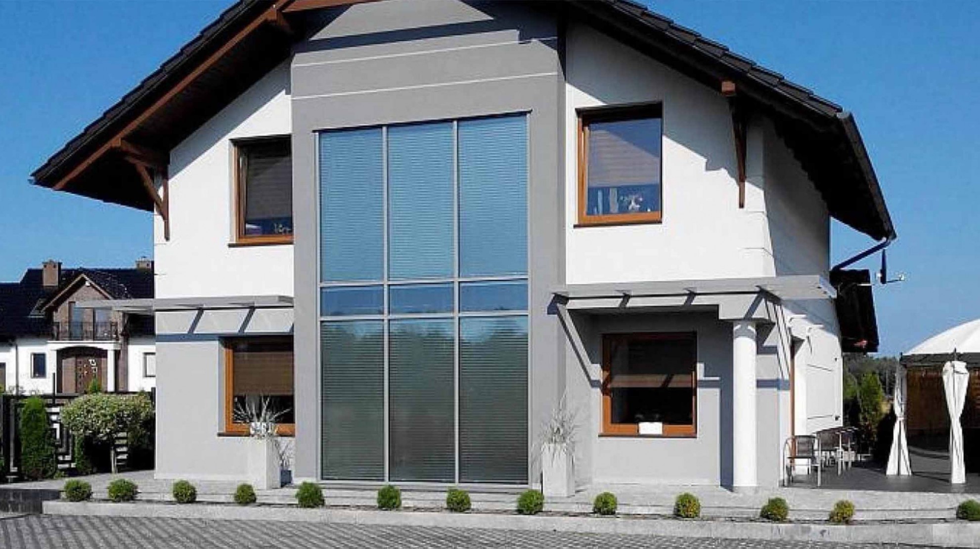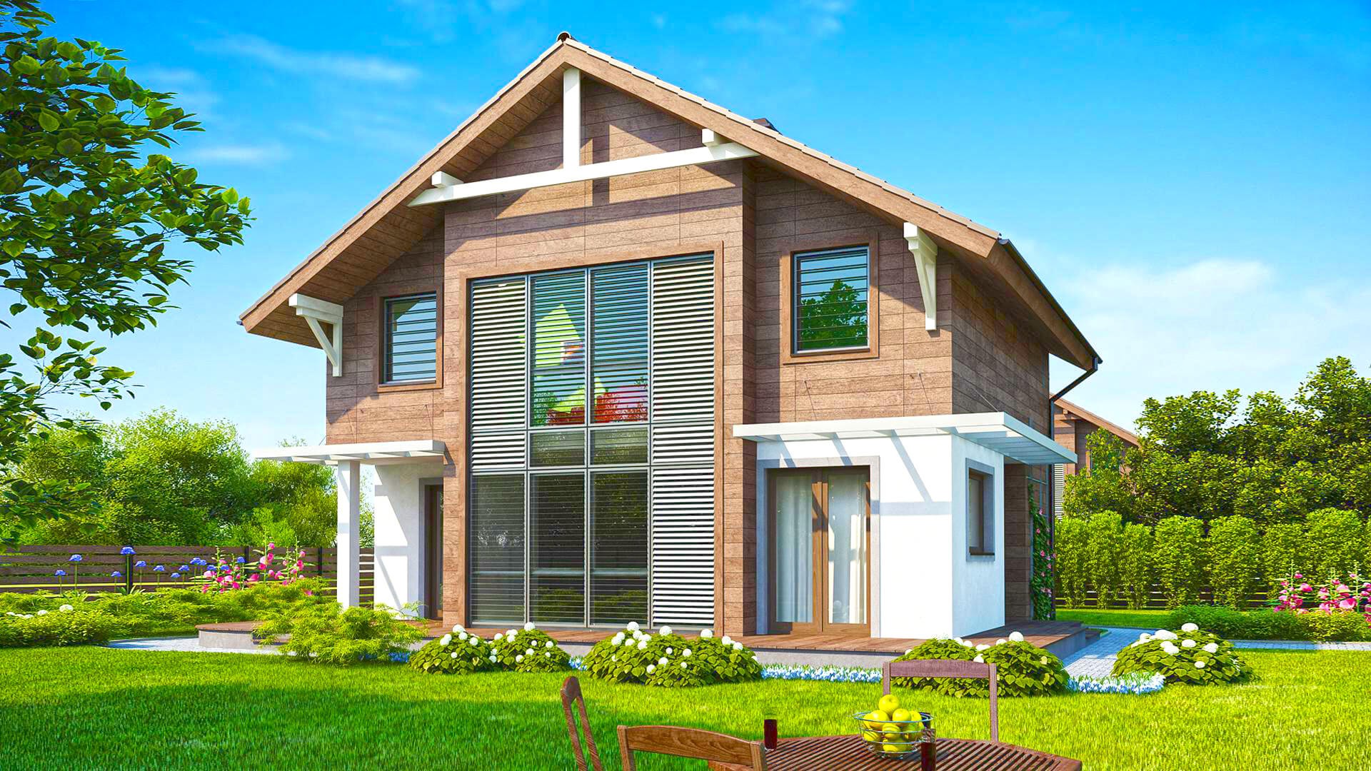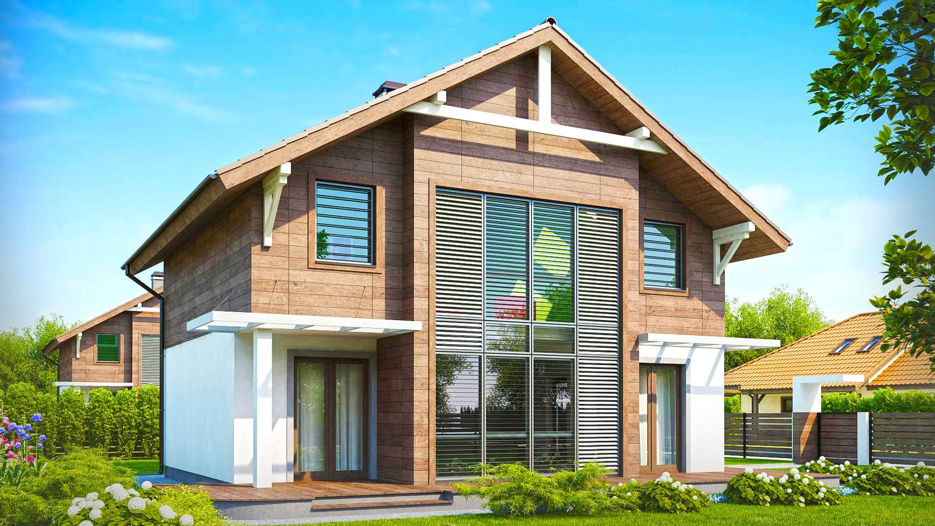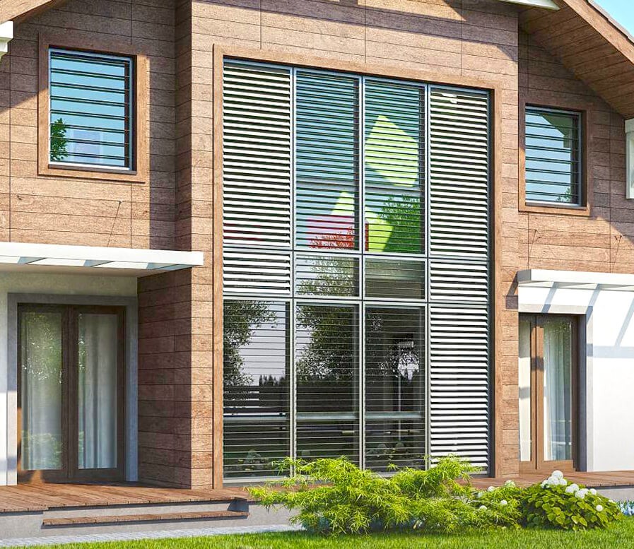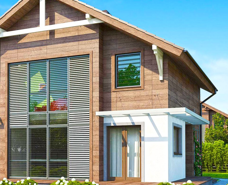Проектирование и строительство частного дома с двумя этажами и высокими окнами