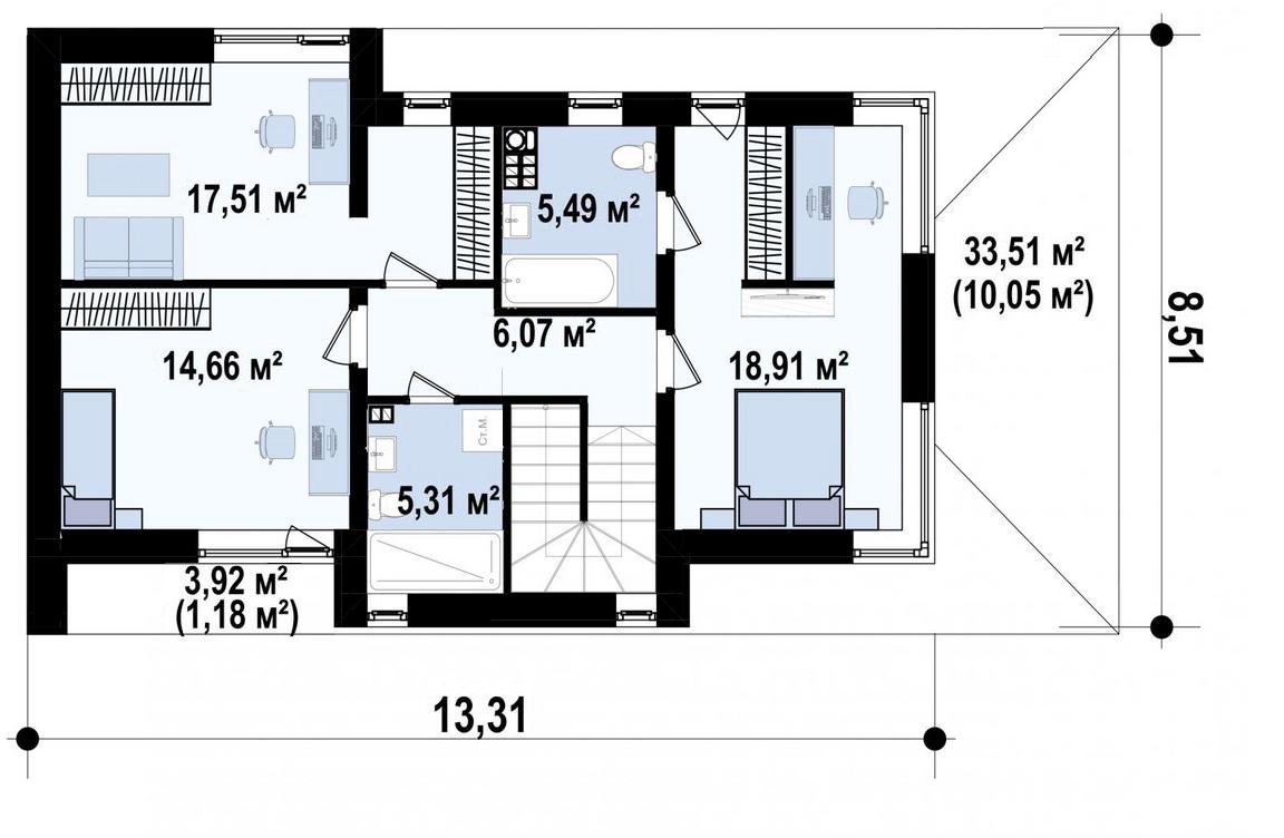 | Площадь кровли | 107 m² |