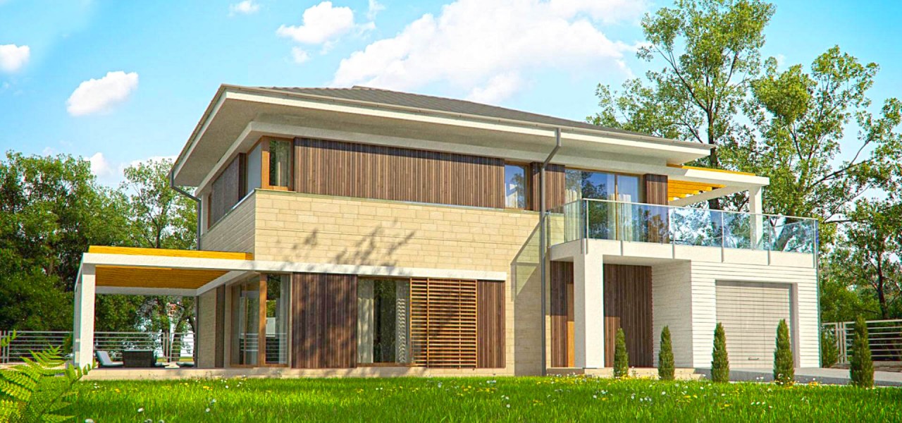 Современный проект двухэтажного дома площадью 139м2 позволит по максимуму использовать полезное пространство, создать примечательное здание и ликвидный образец недвижимости на любом участке.