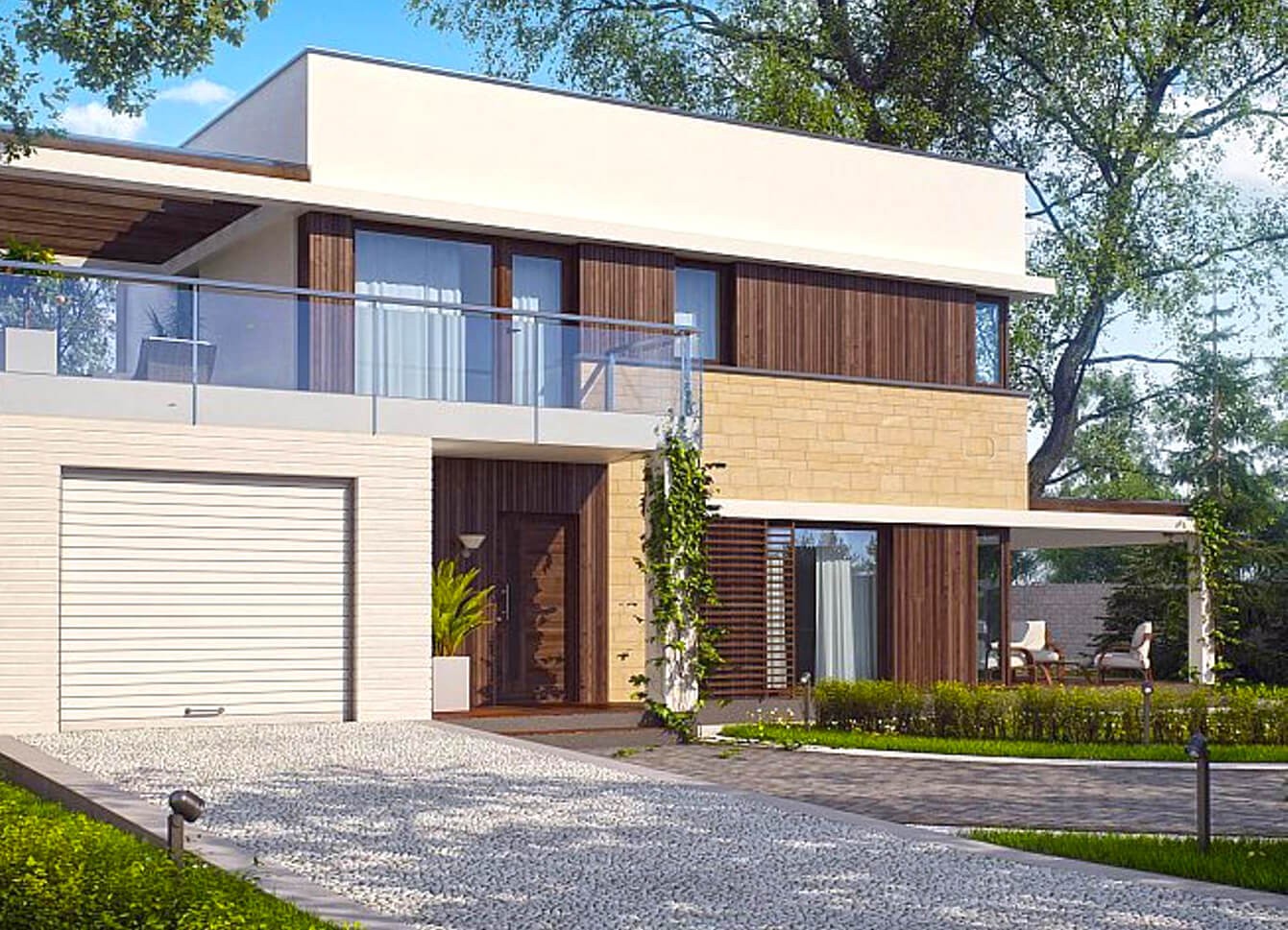 Оригинальный проект двухэтажного дома площадью 139м2, позволяющий воплотить принцип практичности, смешение городского и средиземноморского стилей.