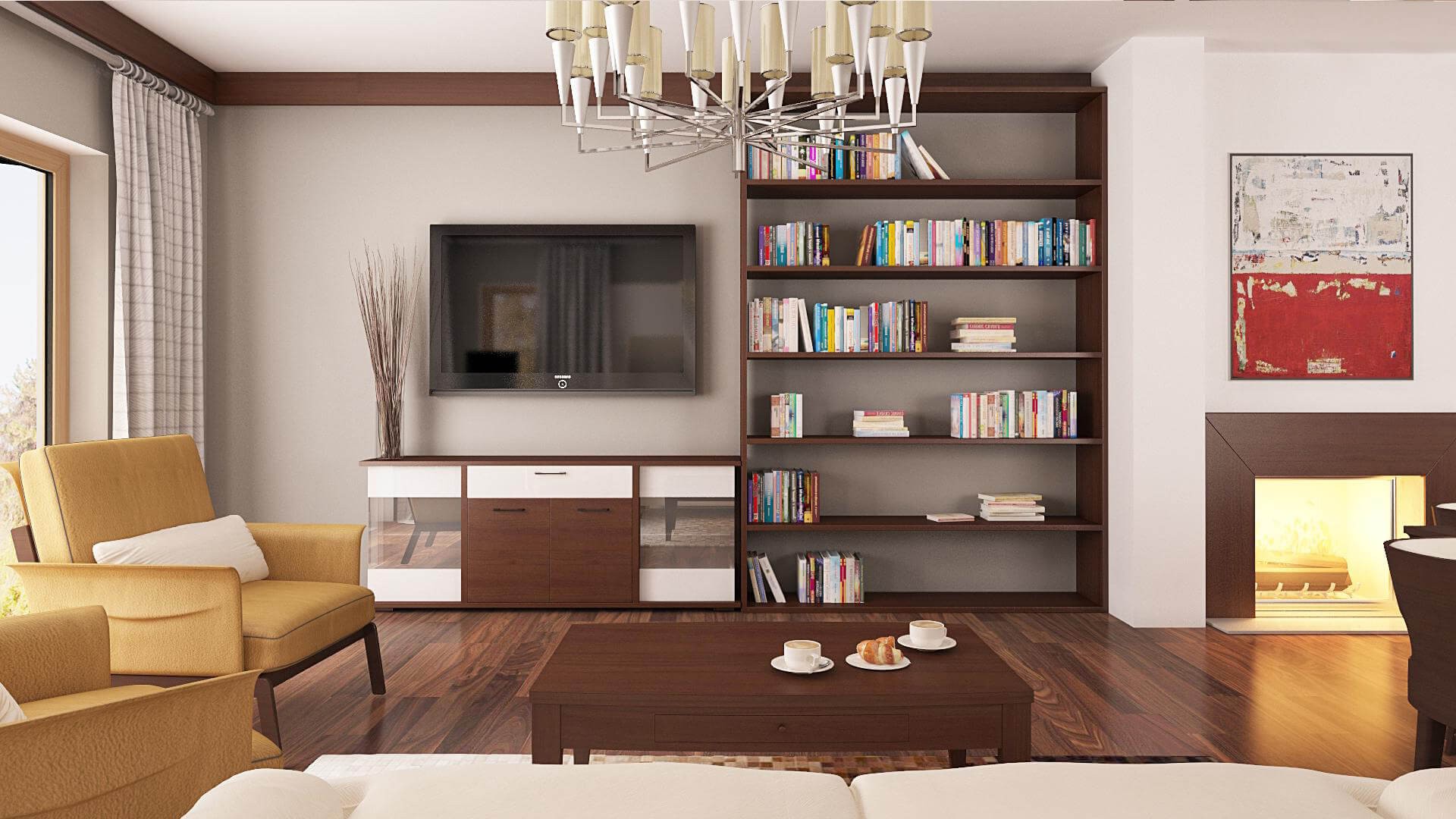 Гостиная в современном стиле с элементами модерн